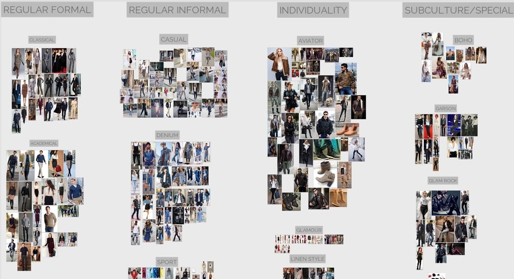 - Mood boards with samples of some basic clothing styles, and different fabrics to see quality of folds and texture.