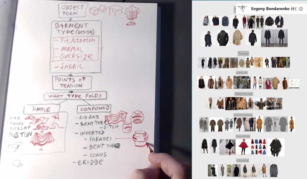 - Mood boards with samples of some basic clothing styles, and different fabrics to see quality of folds and texture.